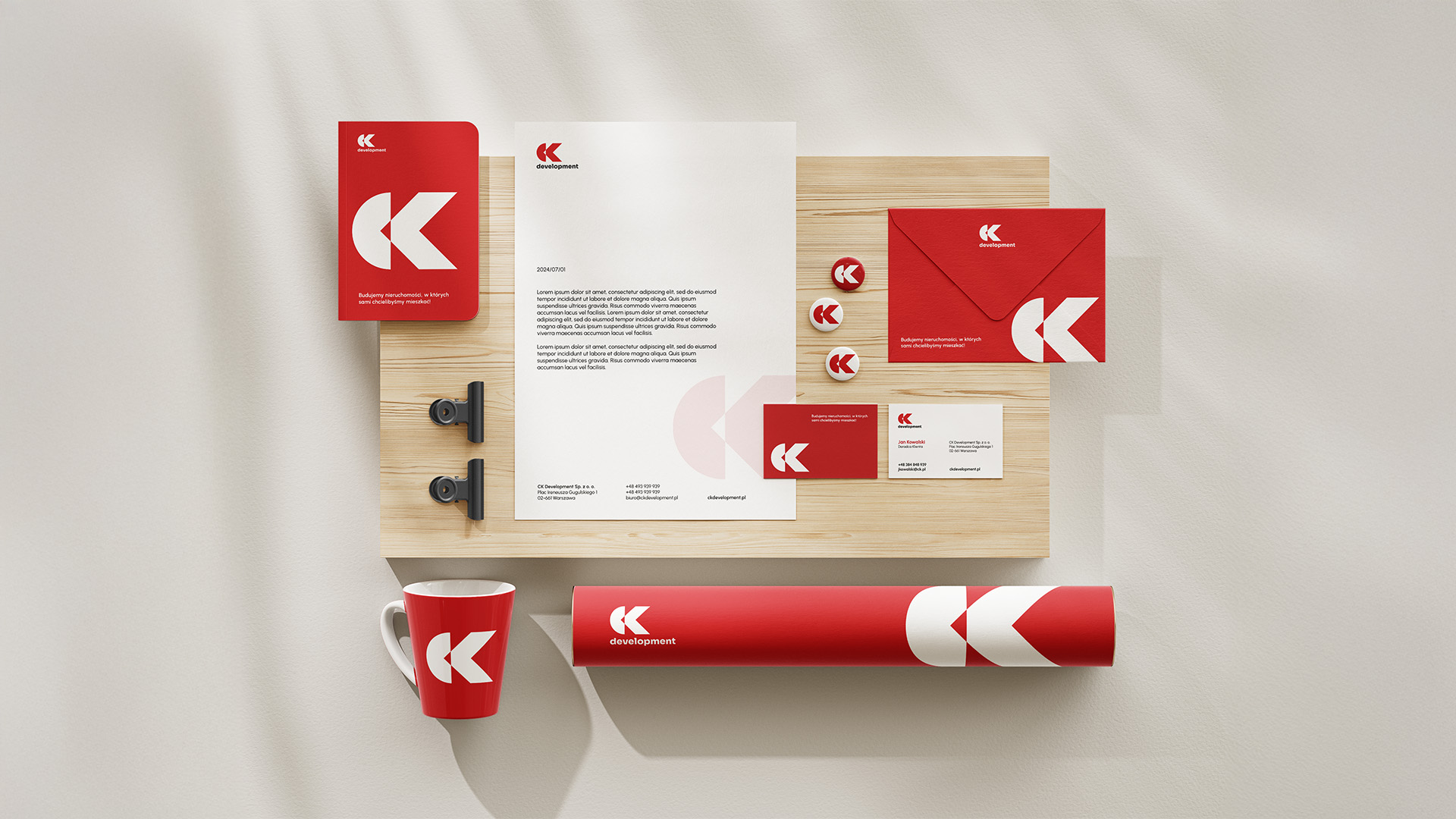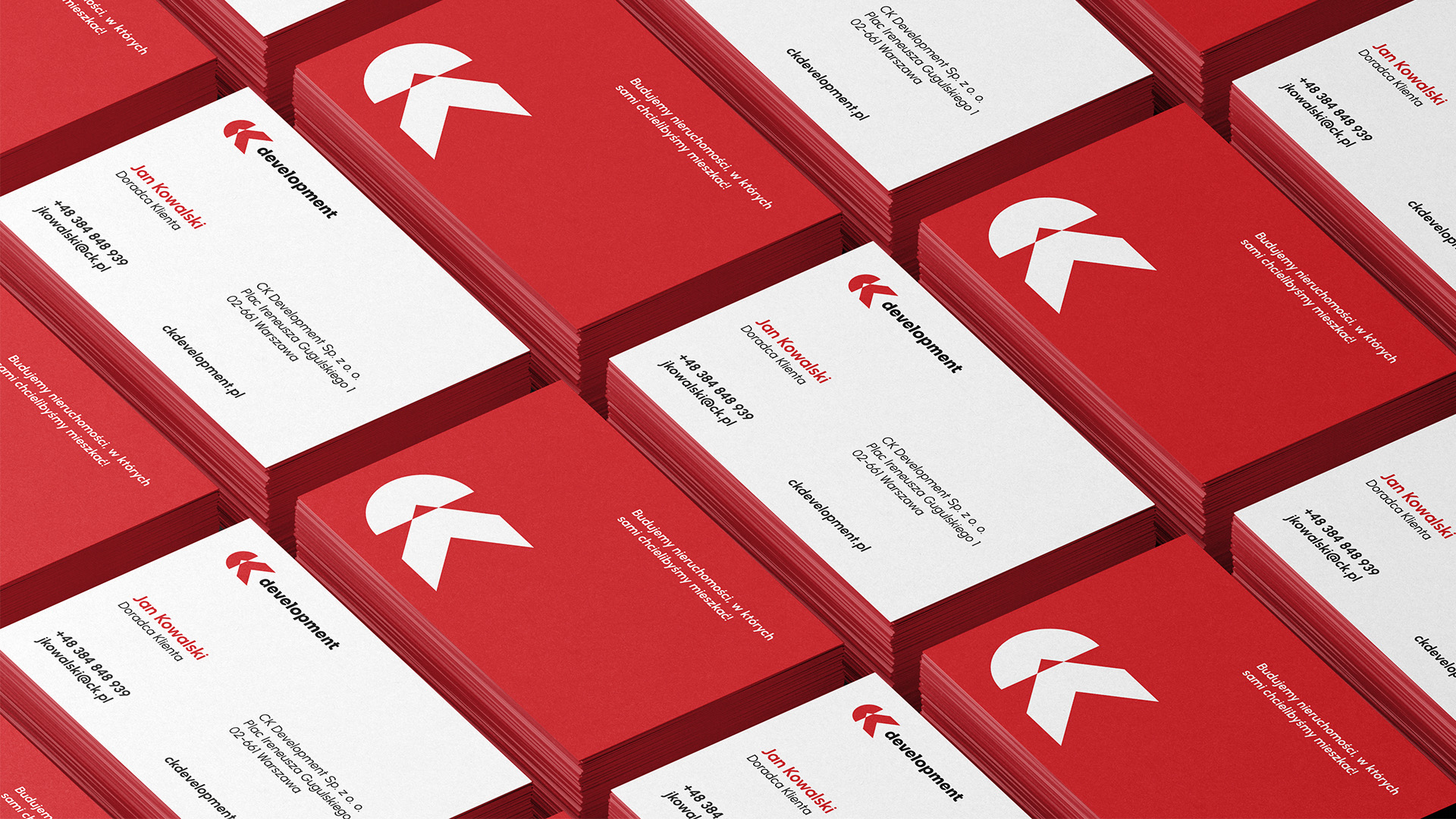 Nowa identyfikacja wizualna CK Development została zaprojektowana jako nowoczesna, czytelna i zapadająca w pamięć. Projekt koncentruje się na prostocie formy i spójności wizualnej, podkreślając profesjonalny charakter marki oraz jej otwartość na potrzeby klientów.