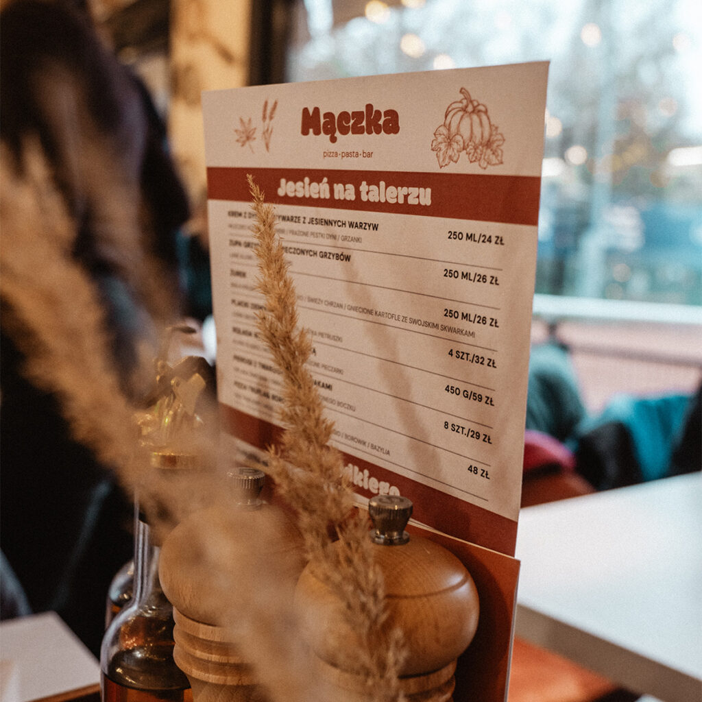 Nazwa Mączka stanowi przewrotne połączenie dwóch światów: mąki, jako podstawy kuchni włoskiej, oraz „mączki” z kortów tenisowych, nawiązującej do sportowej pasji właścicieli. Koncepcja stała się fundamentem dalszych działań wizualnych i komunikacyjnych.