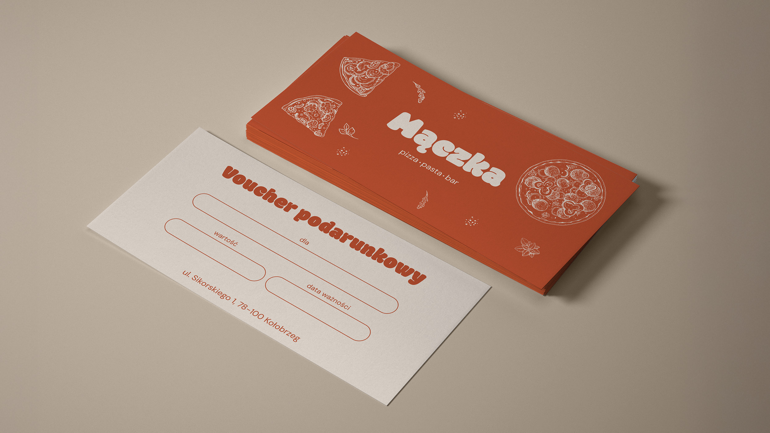 Identyfikacja wizualna restauracji Mączka została zaprojektowana jako lekka, charakterystyczna i zapadająca w pamięć. Projekt łączy kulinarne odniesienia z subtelnymi akcentami sportowymi, budując spójny i autentyczny wizerunek marki.
