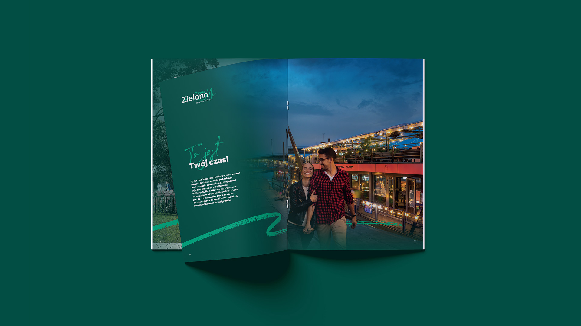 Naming oraz system identyfikacji zostały zaprojektowane tak, aby odzwierciedlać naturalny kontekst inwestycji i jej harmonijny związek z otoczeniem. Kolorystyka, typografia i kompozycja materiałów podkreślają lekkość, świeżość oraz przyjazny charakter projektu.